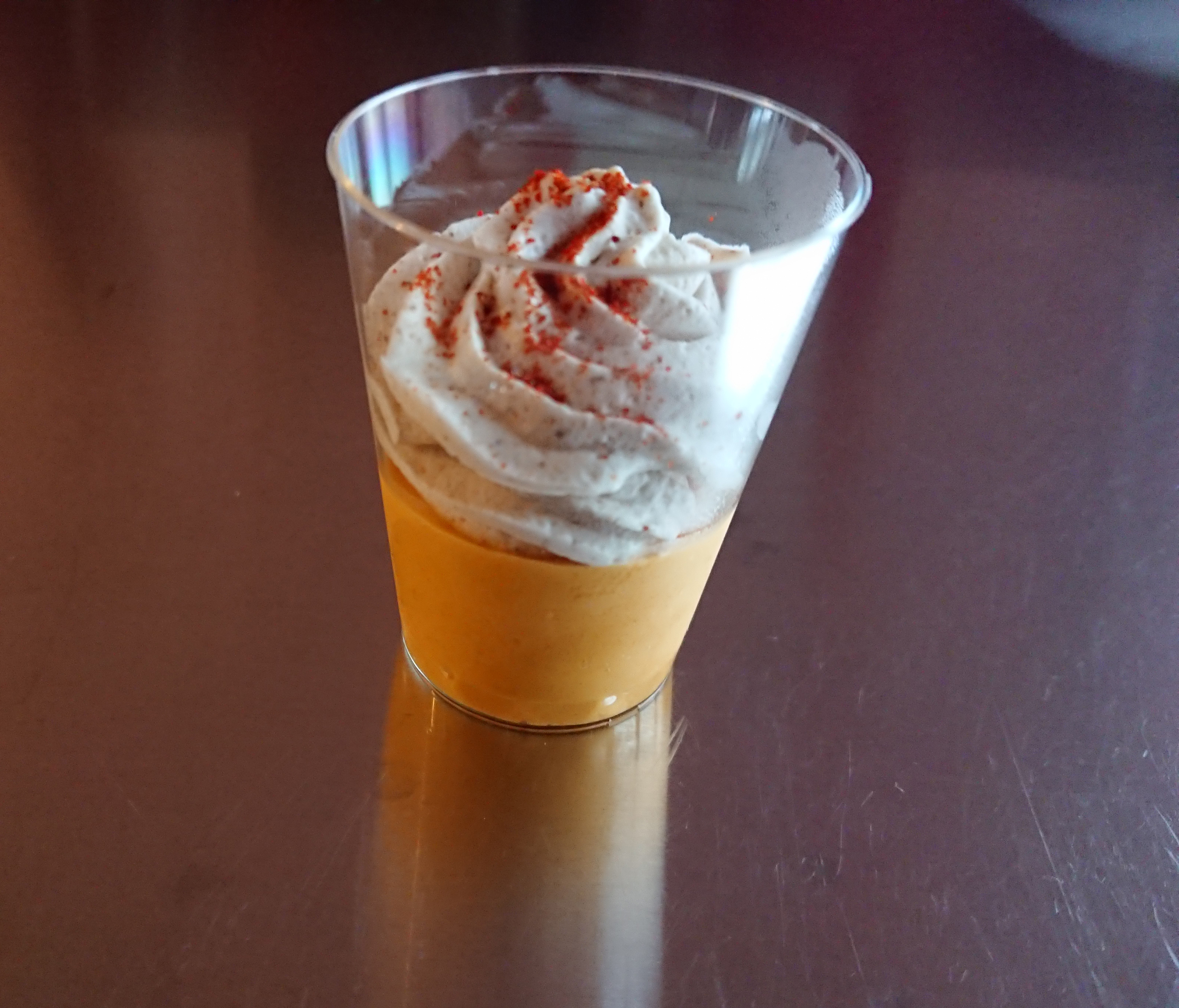 verrine pana cotta poivrons jaunes / chips de jambon sec